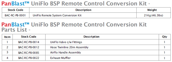 The PanBlast™ UniFlo Remote System Conversion kit is a combination package